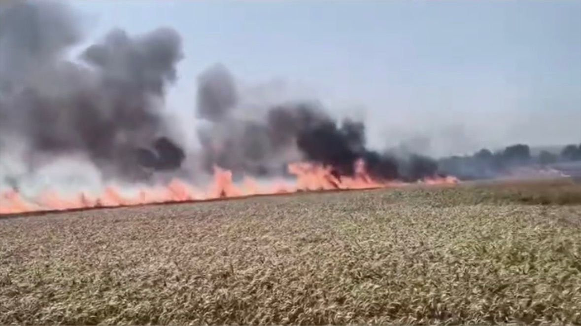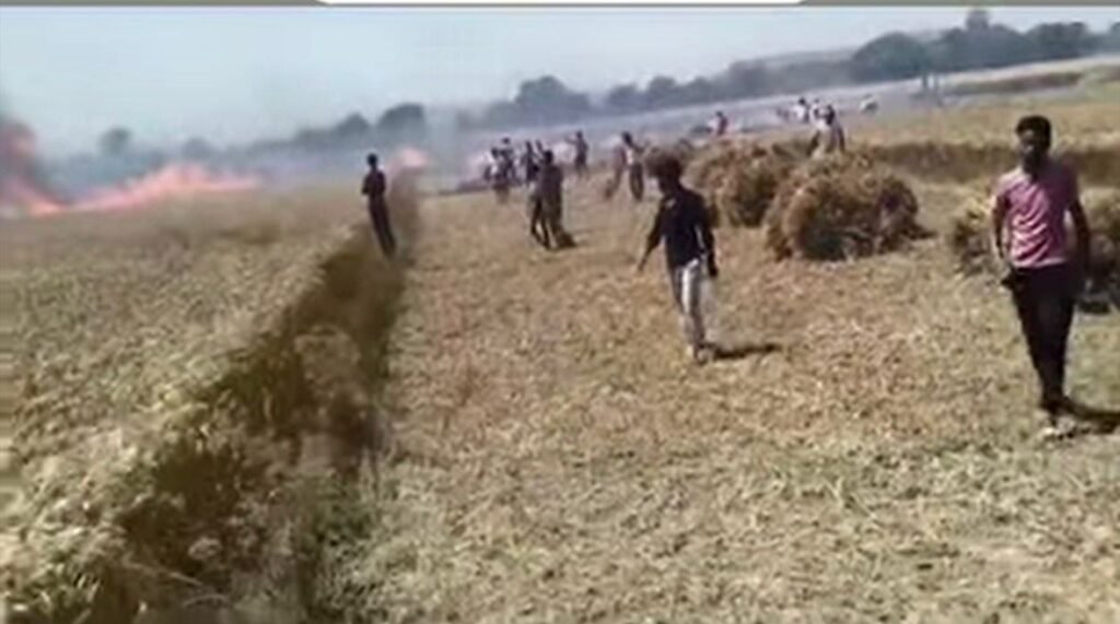 बिजली लाइन में शार्ट सर्किट से खेतों में लगी आग, कई बीघा गेहूं की फसल स्वाहा