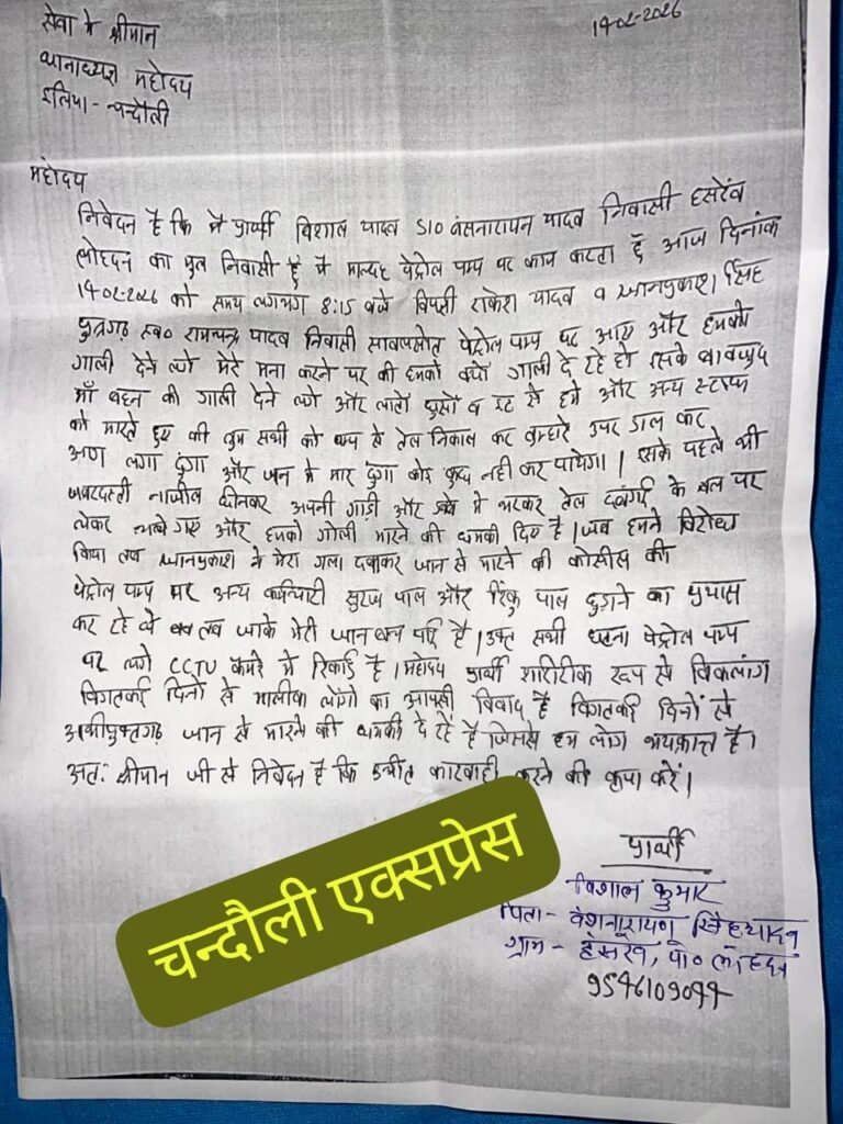 इलिया (चंदौली) क्षेत्र के एक पेट्रोल पंप पर 14 फरवरी की रात करीब 8:15 बजे कथित रूप से परिवार के ही दूसरे पक्ष के लोग पहुंचे और ड्यूटी कर रहे दिव्यांग सेल्समैन विशाल कुमार के साथ गाली-गलौज करते हुए मारपीट शुरू कर दी।