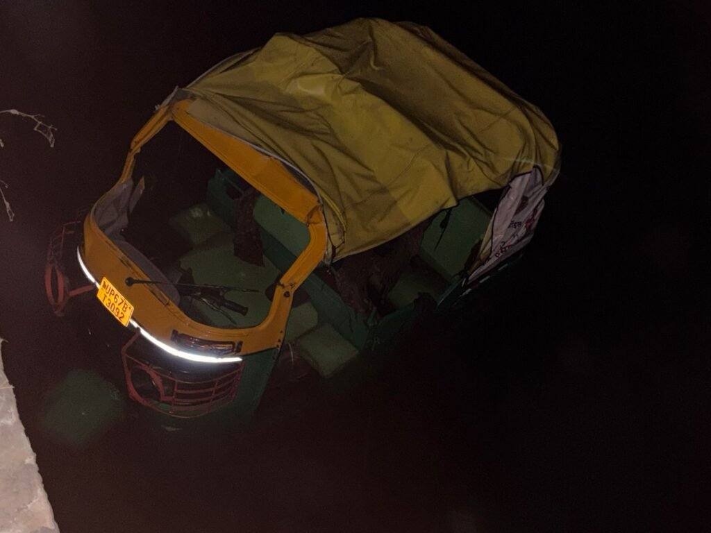 तेज रोशनी बनी हादसे की वजह, नहर में गिरा ऑटो — चालक सुरक्षित