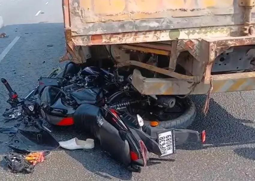 हाईवे पर कंटेनर से भिड़ी तेज रफ्तार बाइक