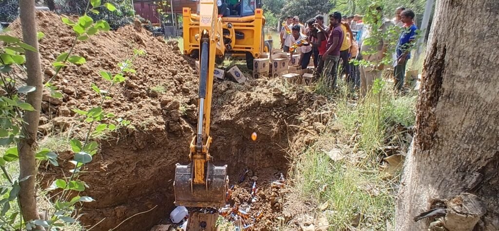 थाना बबुरी में बड़ी कार्रवाई, 4419 लीटर अवैध शराब जेसीबी से नष्ट