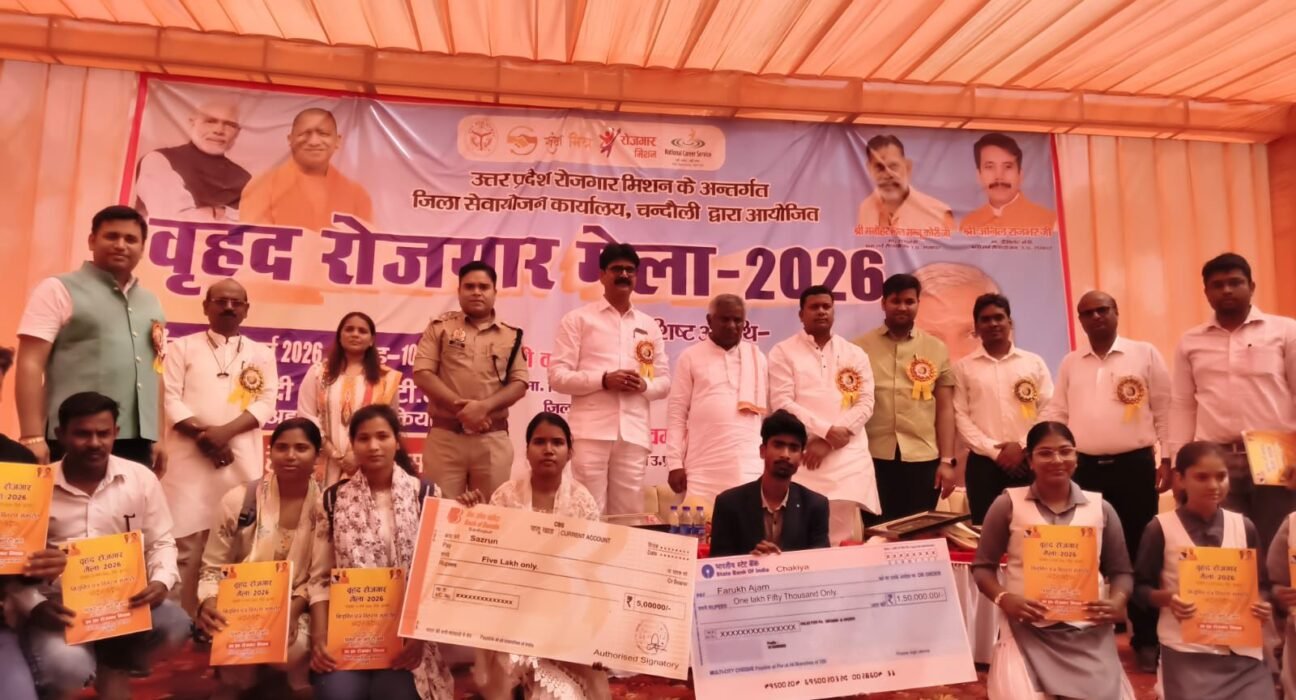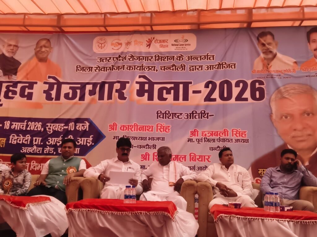 चकिया चंदौली। उ0प्र0 रोजगार मिशन के तहत जिला सेवायोजन कार्यालय चंदौली द्वारा 18 मार्च 2026 को द्विवेदी प्राइवेट आईटीआई परिसर, अहिरौरा रोड, चकिया में वृहद रोजगार मेले का आयोजन किया गया। मेले में कुल 30 कंपनियों ने प्रतिभाग किया और बड़ी संख्या में युवाओं को रोजगार के अवसर प्रदान किए गए।