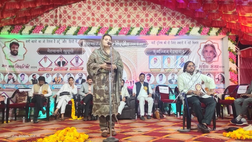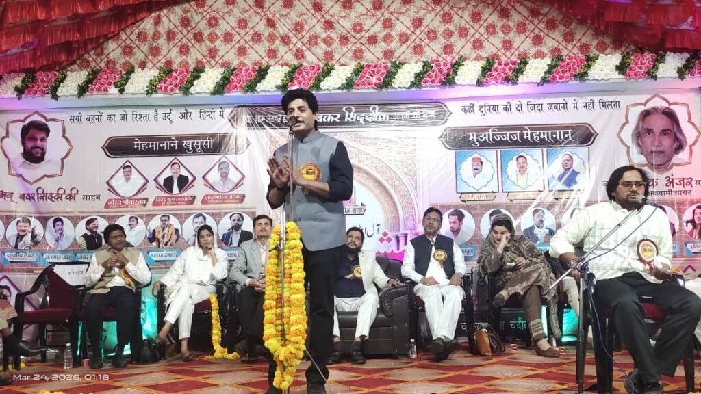 शहाबगंज चंदौली: बड़गावां गांव में सोमवार की रात कुछ अलग ही नजारा था। यहां नफरत नहीं, मोहब्बत की बातें हो रही थीं… मंच से उठती हर आवाज एकता का संदेश दे रही थी… और हजारों की भीड़ पूरी रात शेरो-शायरी में डूबी रही।