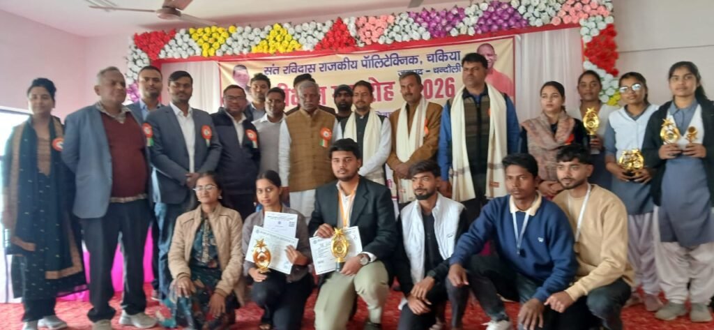 इलिया । संत रविदास राजकीय पॉलिटेक्निक, चकिया में शनिवार को वर्ष 2025 बैच के उत्तीर्ण छात्र-छात्राओं के लिए दीक्षांत समारोह का आयोजन किया गया। कार्यक्रम में मुख्य अतिथि के रूप में श्री कैलाश आचार्य उपस्थित रहे। उन्होंने उत्तीर्ण विद्यार्थियों को डिप्लोमा प्रमाणपत्र एवं मार्कशीट वितरित की, साथ ही उत्कृष्ट अंक प्राप्त करने वाले नौ मेधावी छात्रों को विशेष रूप से पुरस्कृत किया गया।