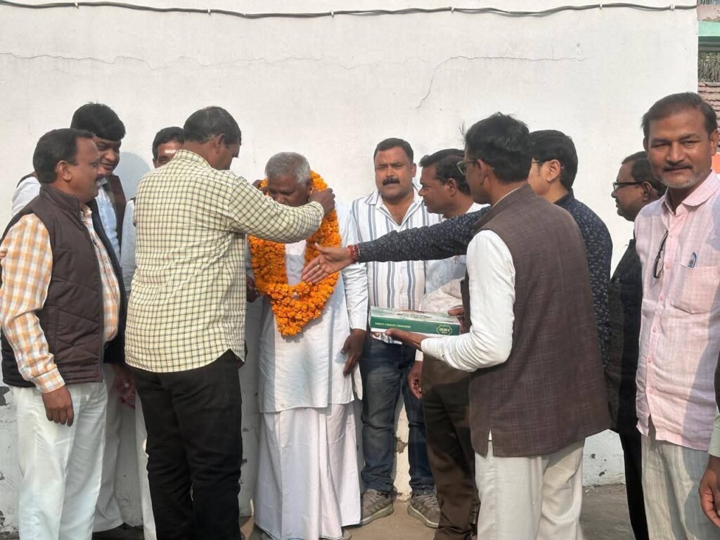 विधायक को माला, मिठाई और अंगवस्त्रम देकर किया सम्मान