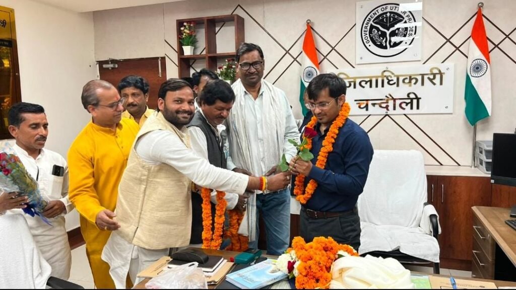 रिपोर्ट मनोज सिंह, चंदौली। जनपद के व्यापारियों ने गुरुवार को जिलाधिकारी चन्द्र मोहन गर्ग का माल्यार्पण कर तथा श्रीमद्भगवद्गीता भेंट कर स्वागत किया। इस दौरान व्यापार मंडल पदाधिकारियों ने प्रशासन की त्वरित कार्रवाई की सराहना की।