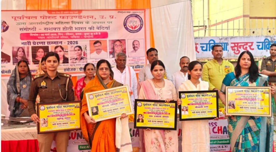 चकिया, चंदौली अंतर्राष्ट्रीय महिला दिवस के अवसर पर नगर के गांधी पार्क परिसर मे ‘सशक्त होती भारत की बेटियां’ विषय पर संगोष्ठी एवं सम्मान समारोह का भव्य आयोजन किया गया। कार्यक्रम का शुभारंभ चकिया विधायक कैलाश आचार्य, नगर पंचायत चेयरमैन गौरव श्रीवास्तव, वरिष्ठ चिकित्सक डॉ. गीता शुक्ला, भाजपा मंडल अध्यक्ष संदीप गुप्ता तथा समाजसेवी कैलाश प्रसाद जायसवाल ने मां दुर्गा के चित्र पर दीप प्रज्वलित और माल्यार्पण कर किया।